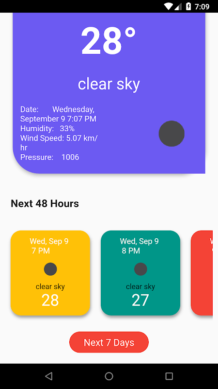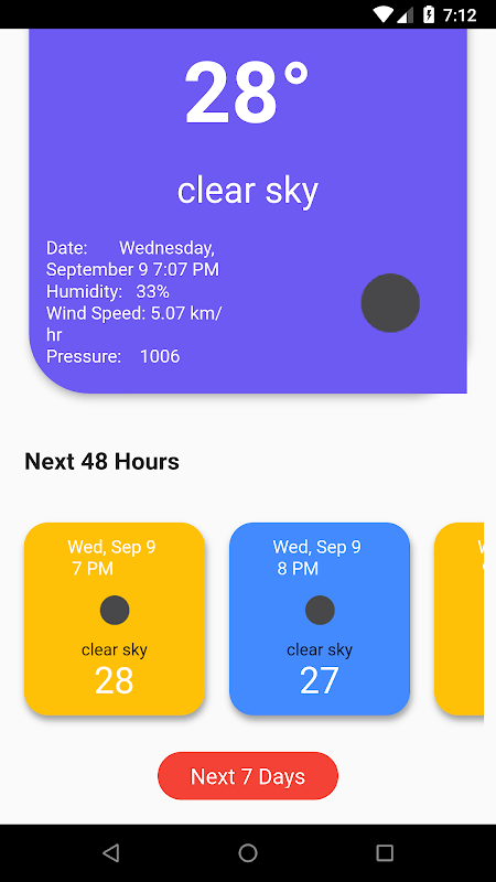 - Weather description: Sunrise Time, Sunset Time, Humidity, Precipitation Probability, Visibility, Wind Speed...