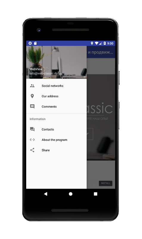 WebView App is a native Android application which uses web view component for displaying content. With this template you can turn your responsive website into a universal mobile app. It is quick, easy and affordable. WebView App has many useful built-in features and services. It is the most popular web view app on Envato Market.