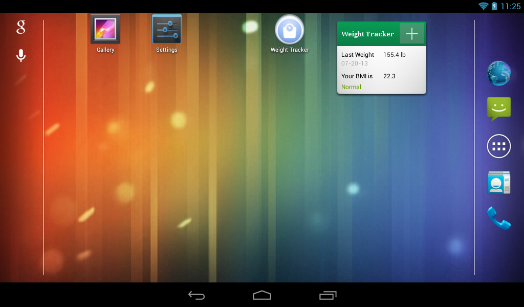 * Beautiful widget for home screen, that shows last weight entry, BMI and allows easy weight entry