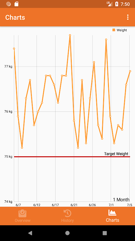Suivez vos progrès vers la perte ou gain de poids. Tracez votre poids graphique.
