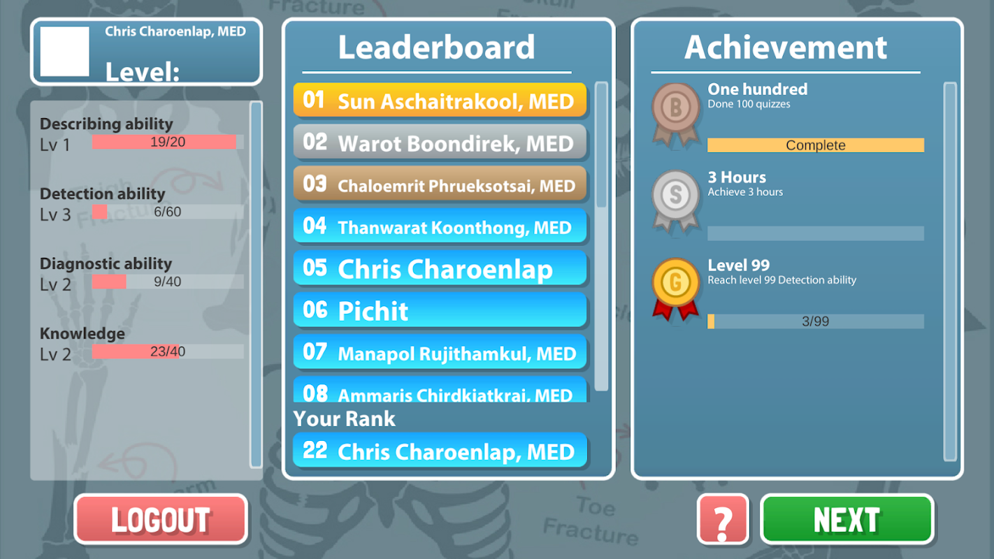 Pratiquez vos compétences médicales avec votre ami. Vous pouvez choisir n'importe quelle leçon.