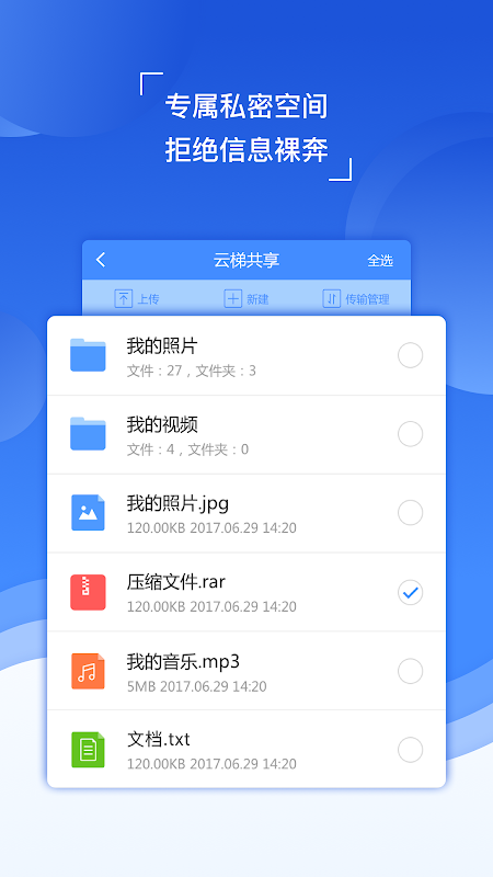 云梯共享,WiFi扩展器的特色功能,通过外接存储设备(移动硬盘、U盘等),即可搭建个人私有云,实现手机的远程传输,随时随地传输文件、视频、照片等信息,让手机内存随心扩展;配备P2P传输技术,点对点传输通道,不通过中转服务器,无惧黑客攻击,无惧隐私泄露风险;支持多人同时传输,便捷分享:家人、朋友聚会照片、经常电影等,一次分享,多人受用。