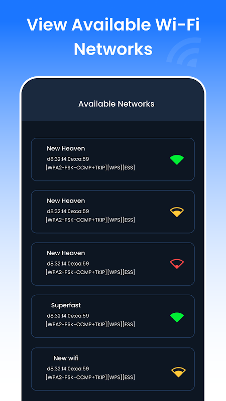 L'une des fonctionnalités exceptionnelles de l'application WiFi Analyzer est sa capacité à surveiller et gérer les utilisateurs connectés sur votre réseau avec WiFi Analyzer - Signal Force. Avec juste un coup d'œil, vous pouvez afficher une liste détaillée de tous les appareils actuellement connectés à votre Wi-Fi. Cet aperçu précieux vous permet d'identifier rapidement des appareils non autorisés ou des violations de sécurité potentielles, en vous garantissant que votre réseau reste sécurisé et exempt d'intrusions indésirables tout en utilisant le générateur de force du signal.