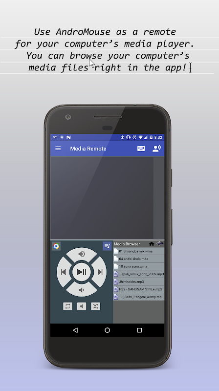 La meilleure et la souris Android à distance d'origine et le clavier là-bas. AndroMouse convertit votre téléphone en souris sans fil, clavier, et plus encore. La connexion avec votre ordinateur se fait soit à l'aide de votre wi-fi existant ou via Bluetooth. AndroMouse propose également à type discours qui utilise la reconnaissance vocale de Google pour rendre votre travail plus facile.