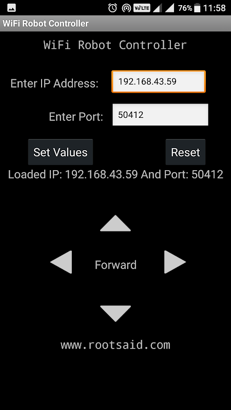 Now you can send the commands to move Forward, Backward, Left and Right using the buttons.