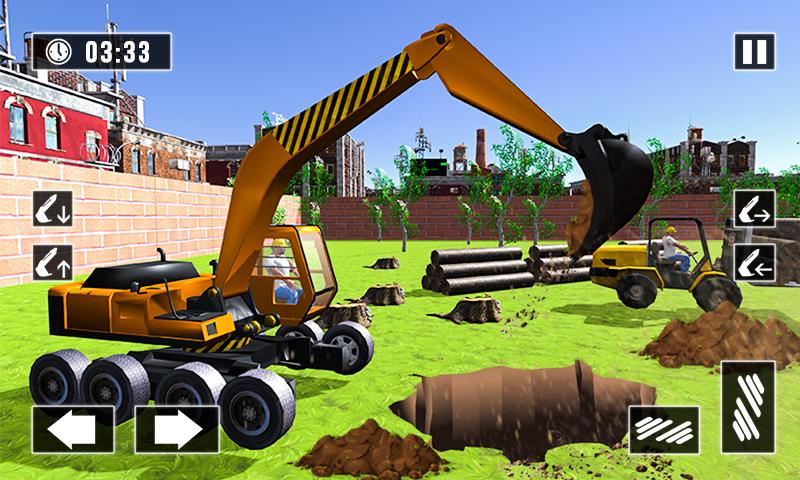Le conducteur de grue doit construire un parc de dinosaures