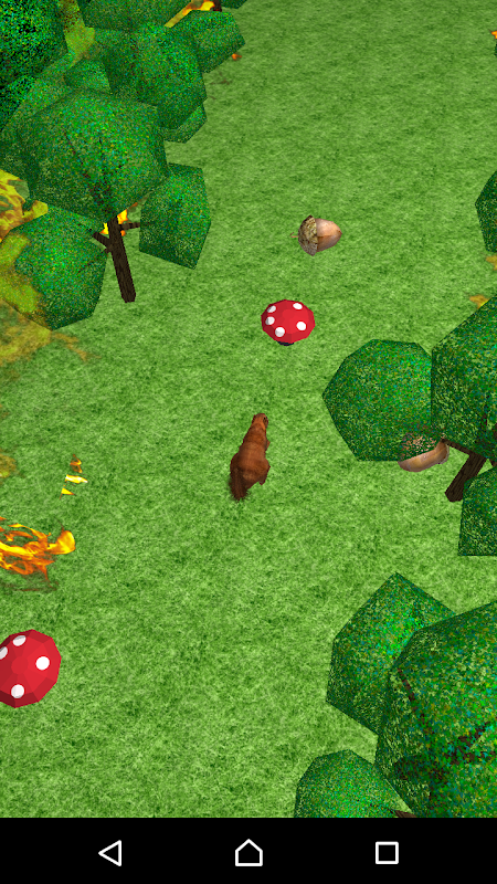 The fire in the forest. Animals must escape to survive. Help the squirrel to leave the burning forest. Collect nuts to accelerate and beware of fly agarics.