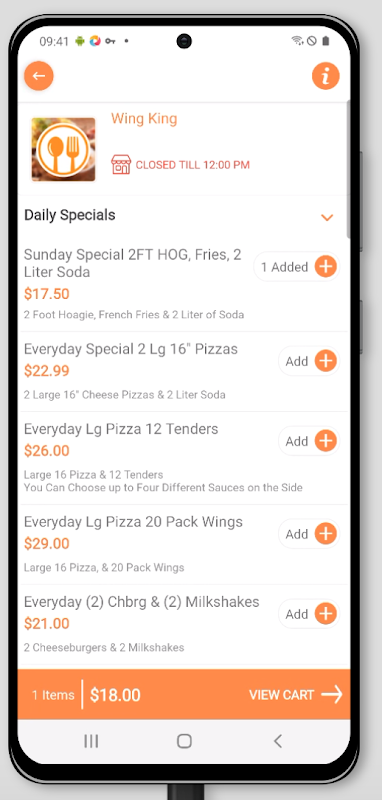 2. Wing King passe au numérique maintenant et possède sa propre application de commande en ligne. Si vous souhaitez commander de délicieux plats chez nous, téléchargez simplement notre application et passez commande en 3 étapes rapides. Créez votre commande comme vous l'aimez ou choisissez l'un de nos combos dans le menu. Ajoutez des éléments du reste de notre menu robuste. Et avec le Order Tracker ®, vous pouvez suivre votre commande à partir du moment où vous la placez jusqu'à ce qu'elle soit livrée, effectuée ou récupérée.