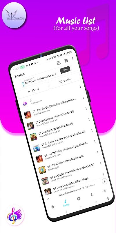 Wings Music Player est une application de lecteur mp3 local hors ligne. Il ne prend pas en charge le téléchargement de musique en ligne ou le streaming de musique.