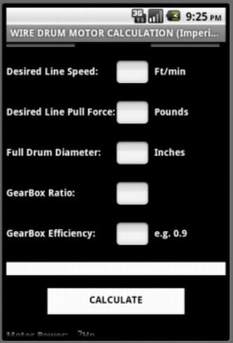 Fil tambour calculatrice est facile à utiliser, simple calculatrice. Vous pouvez calculer la capacité de fil de la batterie et les calculs de puissance du moteur / de couple. Vous pouvez facilement estimer la quantité de fil que votre conception de tambour peut contenir.