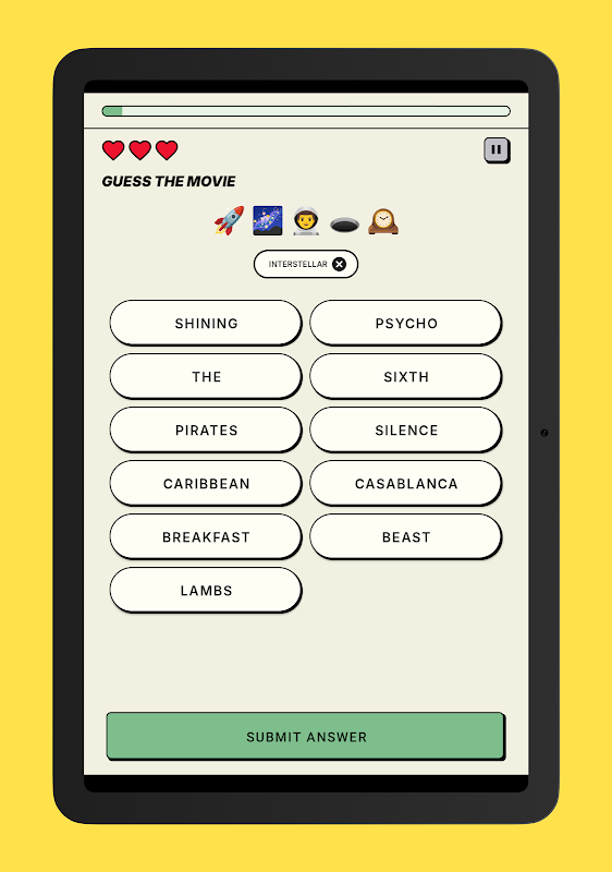 🎬 PLUS DE 350 ÉNIGMES DE FILMS : L'application contient plus de 350 énigmes de films uniques réparties en 42 manches ! Nous couvrons tous les genres, de l'action à l'horreur, en passant par l'animation et la romance.
