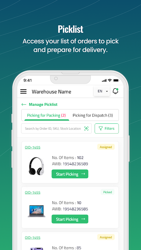 Choisissez et gérez efficacement les articles dans l'entrepôt avec des mises à jour en temps réel.