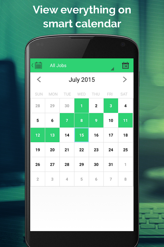 • Utilisez la vue calendrier de contrôle pour suivre vos revenus par des emplois ou de projets