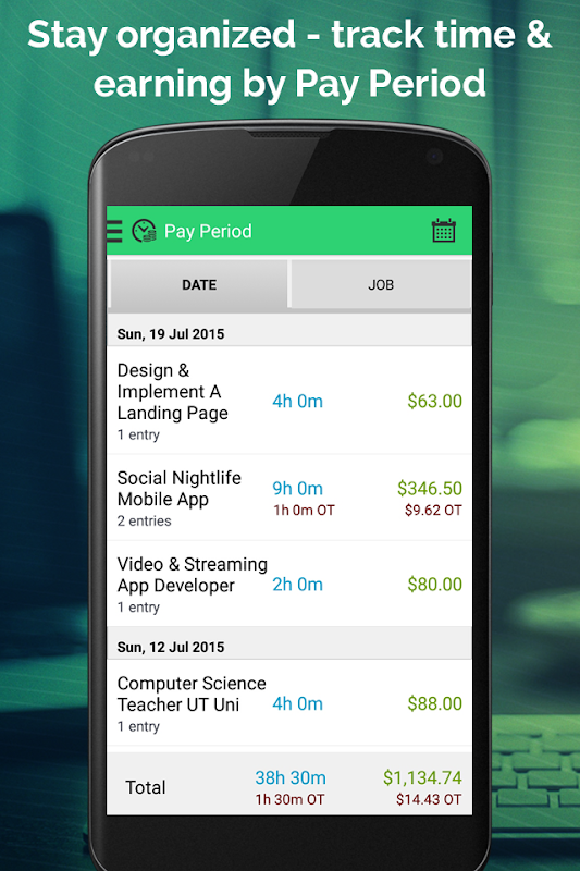 • ajouter rapidement plusieurs emplois et le suivi des heures de temps / salaire réel gagnant