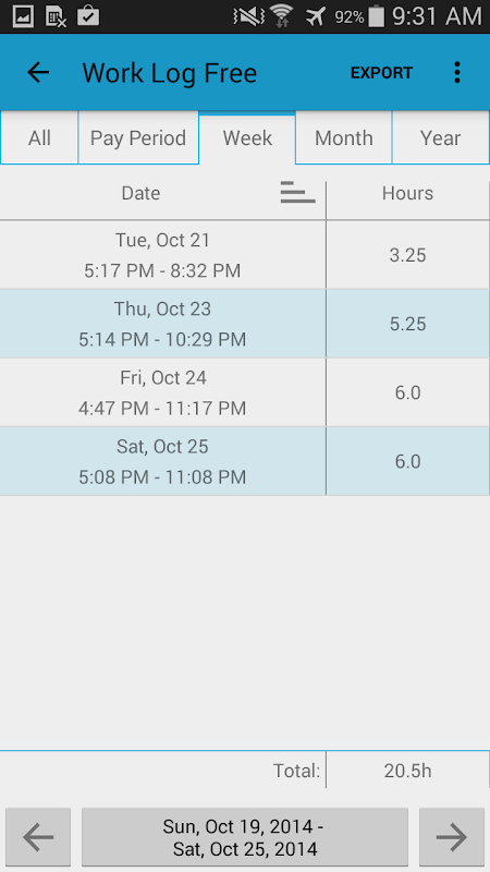 • Exportez vos quarts enregistrés sous forme de feuille de calcul (.CSV) par semaine, mois, année, période de paie ou tous les quarts enregistrés.