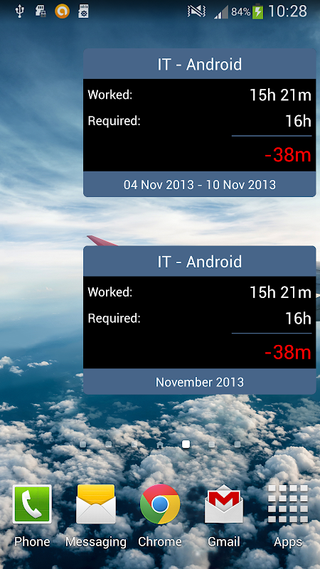 - Un widget écran d'accueil qui vous montre un bref résumé des heures et du travail et nécessaires