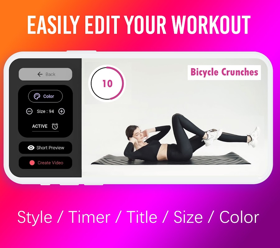- Éditeur vidéo d'exercices : effectuez des ajustements rapides sur vos vidéos, en vous assurant qu'elles sont parfaites pour le partage. Y compris une minuterie animée et des étiquettes d'exercices.