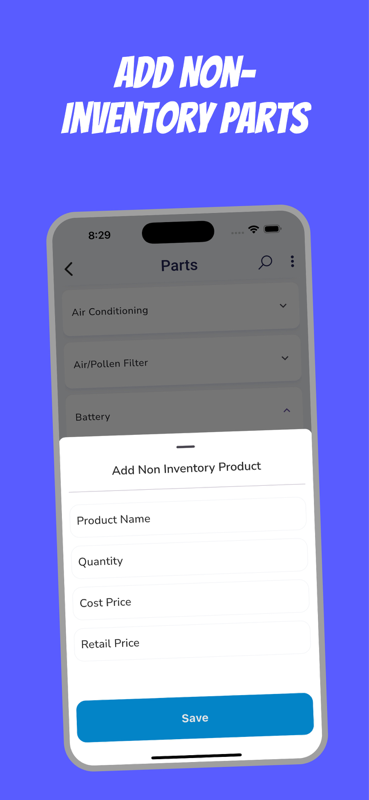 Lecture de codes-barres pour la facturation : les mécaniciens peuvent scanner les codes-barres des produits directement dans les factures pendant qu'ils travaillent, garantissant ainsi que toutes les pièces et tous les services sont facturés avec précision.