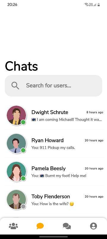 Discutez avec des amis ou faites-en de nouveaux. Créez des groupes pour sortir. Fabriqué avec Flutter.