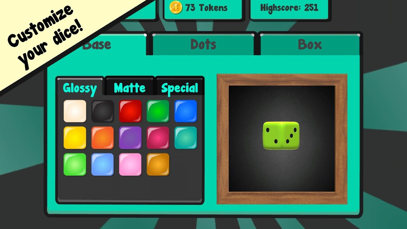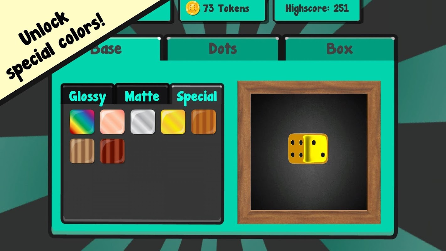La personnalisation fait partie intégrante de Yatzy 3D - Jeu de dés gratuit. Vous gagnerez de la monnaie dans le jeu à chaque partie jouée et pourrez débloquer des couleurs pour vos dés. Vous pouvez débloquer de nombreuses couleurs différentes pour vos dés, y compris des couleurs spéciales qui ne peuvent être obtenues qu'avec des «jetons», que vous gagnerez en lançant un Yahtzee.