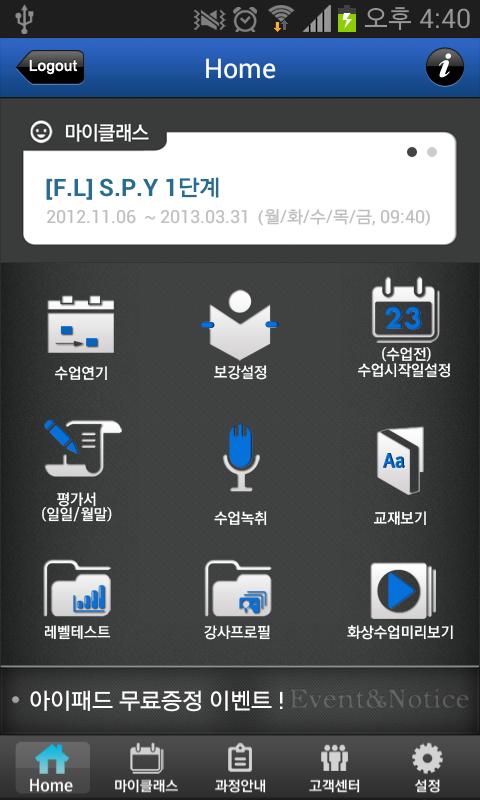 스마트폰으로 원어민 강사와 실시간 화상 영어회화를 체험할 수 있는 학습 Application.