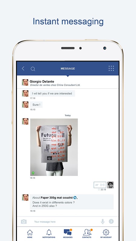 •Les fournisseurs et les acheteurs se retrouvent autour d’une seule messagerie pour communiquer au quotidien.