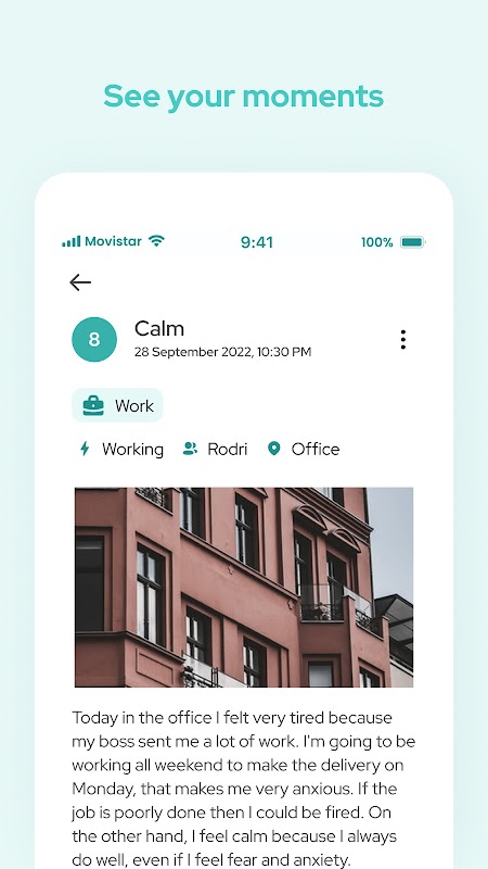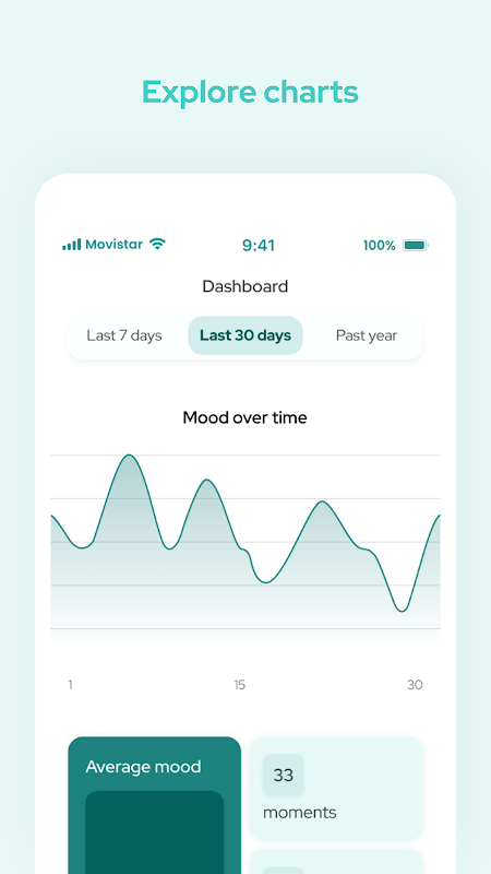 En examinant vos données à l'aide de nos analyses, vous pouvez suivre vos scores moyens, voir les changements au fil du temps et établir des liens entre les personnes, les lieux et les activités et votre humeur générale. Vous pouvez surveiller l'équilibre de votre vie en fonction de la répartition de vos moments dans différents domaines de votre vie et voir une année entière de moments dans Year at a Glance.