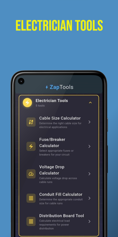 ZapTools est une application multi-outils polyvalente sur le marché : une boîte à outils puissante contenant des calculatrices de précision, des utilitaires intelligents, des graphiques de référence, des simulateurs et bien plus encore. Conçu pour les ingénieurs, les techniciens, les bricoleurs et les esprits curieux, ZapTools vous offre des outils de qualité professionnelle dans un large éventail de disciplines, le tout dans une application élégante au thème sombre.