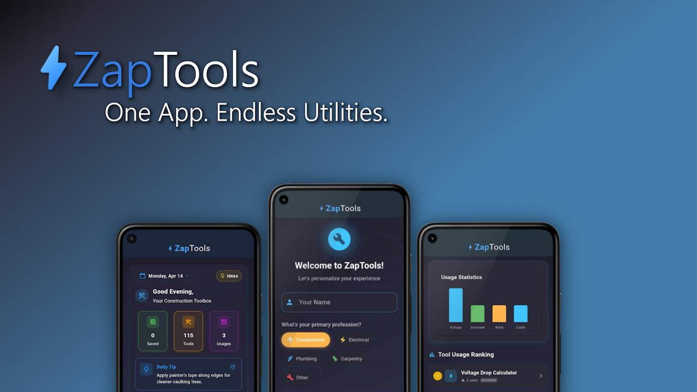 Que vous travailliez sur un chantier de construction, dépannez un réseau, réglez une voiture ou simplement lancez une pièce de monnaie, ZapTools est là pour vous.