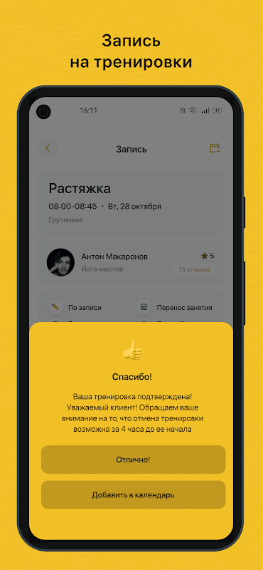 Application mobile pour les clients des clubs de fitness et des studios de sport