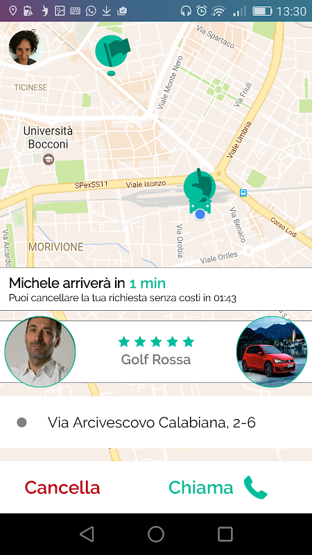 3. Quando invii la richiesta Zego trova in tempo reale l’auto con posti liberi più vicina e in pochi istanti ti invia il profilo di chi si é reso disponibile a darti il passaggio