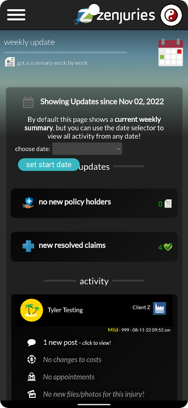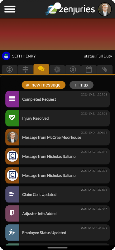 Communiquez avec votre équipe, chronométrez les flux de travail, gérez les assurés, signalez et consultez les blessures, consultez les statistiques de l'entreprise et bien d'autres fonctionnalités ! Transformez les blessures en Zenjuries !