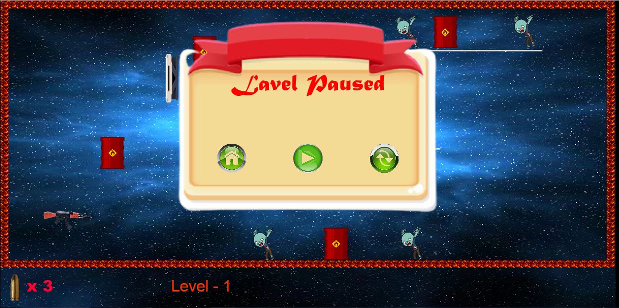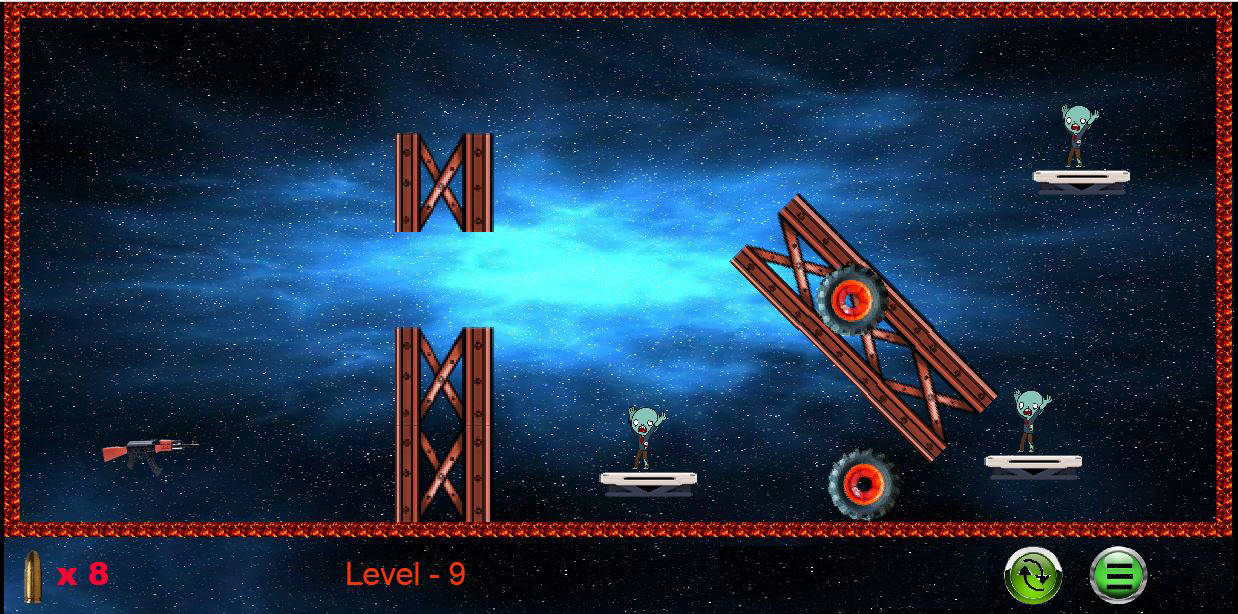 Touch the screen to set the target of the gun and fire the untouched bullet. And just kill all the zombies in the given total number of bullets. In this way, if you kill all the zombies within a certain bullet, then the stage is completed. You can go to the next stage.