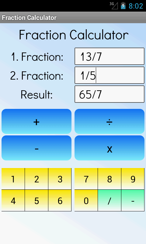 Best mathematical tool for school and college! If you are a student, it will helps you to learn arithmetics and calculations with fraction numbers.