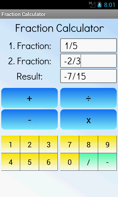 Fraction Calculator: add, subtract, multiply and divide fractions.