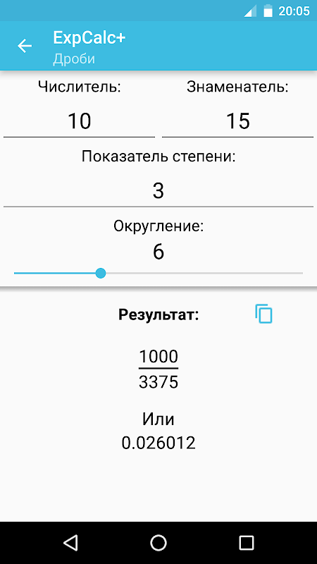 ExpCalc+ - a program for calculating the numbers and fractions in any degree.