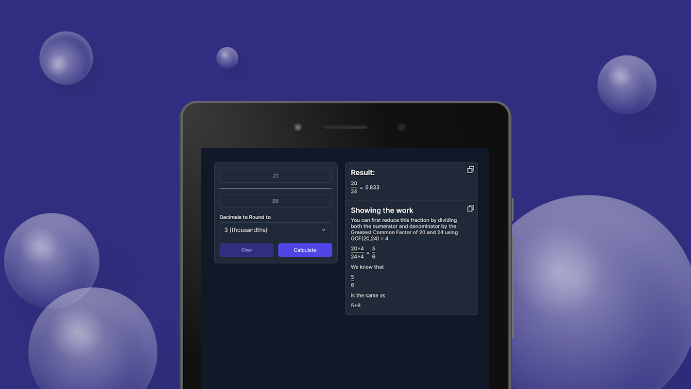 Math is beautiful, especially when you have the right tools by your side. Equip yourself with our Fraction to Decimal Calculator and turn math challenges into a delightful experience. Download now!