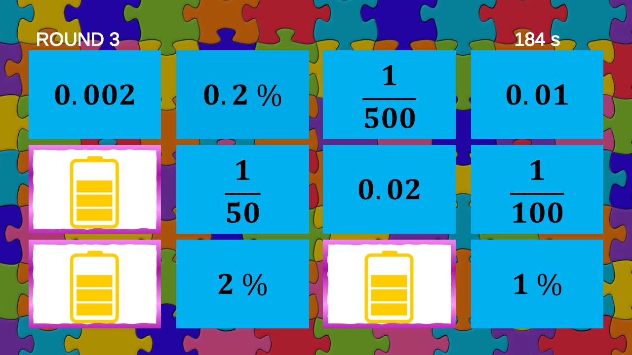 So, let's dive into the world of mathematics together! This game offers an interactive and inspiring learning experience to strengthen your skills in converting fractions, decimals, and percentages. Get ready to challenge yourself and enjoy the journey of learning mathematics in a playful environment!