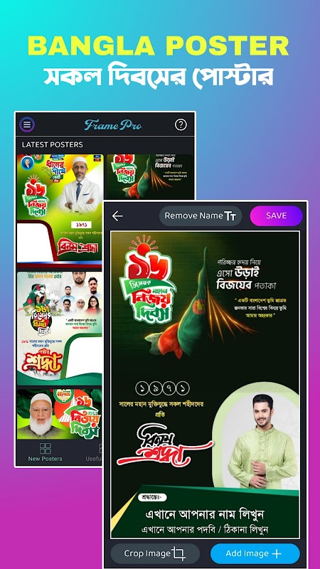 সকল দিবসের পোস্টার এবং সকল দিবসের ফটো ফ্রেম পেয়ে যাবেন এই FramePro অ্যাপটিতে।