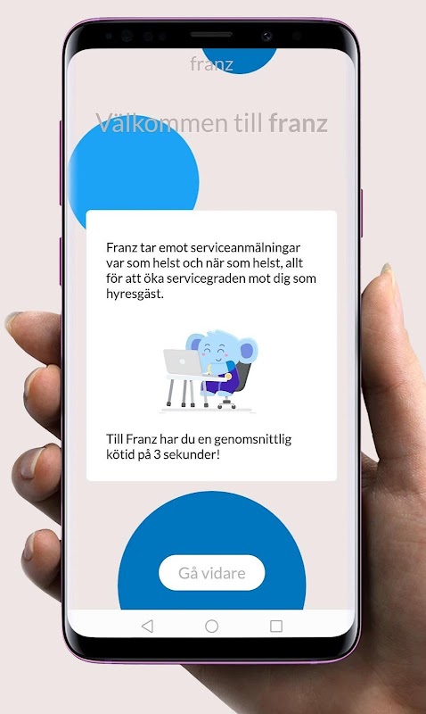 Franz är en chattbot med en genomsnittlig kötid på 3 sekunder. Franz guidar och tar emot serviceanmälningar från dig som hyresgäst - allt för att du ska kunna rapportera ett fel snabbt och enkelt.