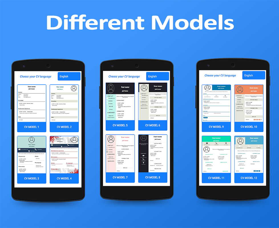 it is easy to create professional CV with Free cv creation application, first choose one of the models.