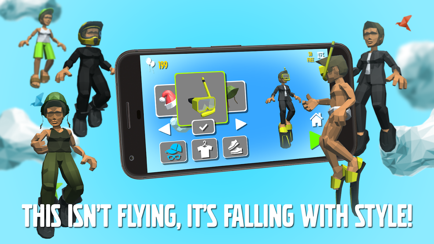 Pop and collect balloons as you dive to exchange for new and exciting outfits, adding a touch of style to your freefall proximity flying adventure.