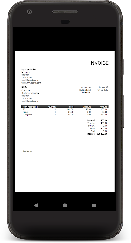 The app makes it easy for small business owners, contractors, consultants and freelancers to send professional looking invoices to customers for free. There is no hidden charge.