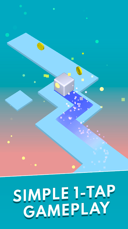 Tap the screen, accompanying the cube along a zig zag path from start to finish of level. Avoid the abyss, collect coins and buy visual upgrades.