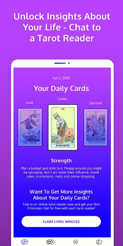 ✓ Free tarot readings - get the first 3 minutes FREE every time you contact a new psychic, in any category