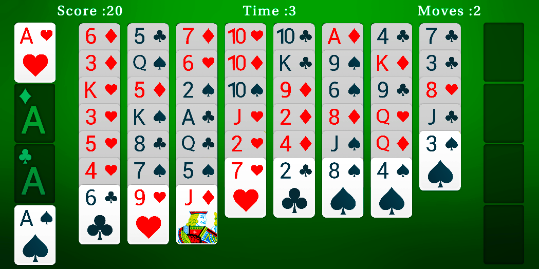 The main goal of the game is to build the 4 foundations on the right, from Ace to King.