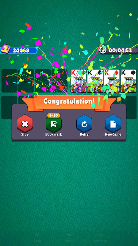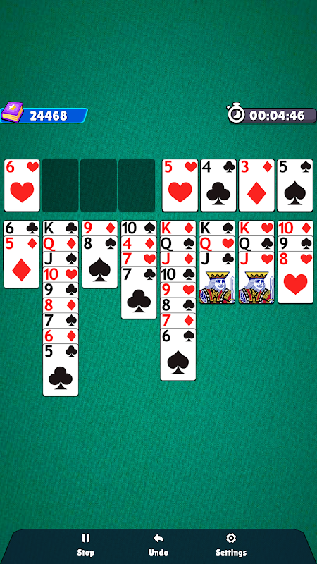 The goal of the game is to stack 52 cards in order of A, 2, ..., 9,10, J, Q, K to complete 4 sets of cards.