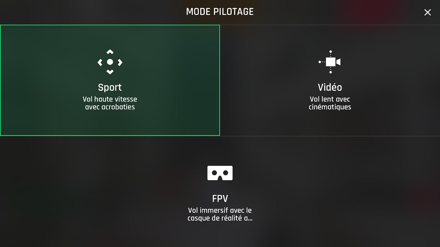 Become a FPV racing pilot using the three new pilot modes. Start with the Easy mode, which will keep your drone’s position in the air even after the controls have been released. Then, move on to Drift mode. This mode deactivates the horizontal stabilization, thus allowing for sharps turns and more complex maneuvers. Last but not least, push your piloting skills to the limit and try the new Racing mode. You’ll have complete control of the drone with no stabilization assistance. The possibilities are endless!