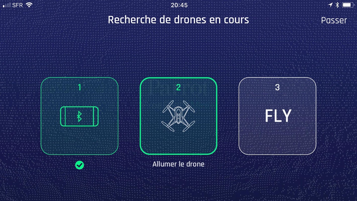 Simply turn on your drone, activate Bluetooth on your smartphone/tablet and open the application. Select your drone from the list that appears on the screen. Your drone will then connect and you are ready for take-off! If you’re using Mambo FPV, activate wifi on your iDevice and connect to your drone in the app.
