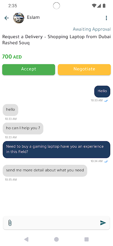 * Accept, reject, or negotiate offers through built-in chat